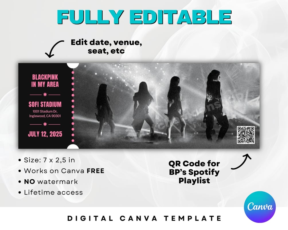 BLACKPINK Deadline World Tour 2025 Concert Ticket Canva Template Printable